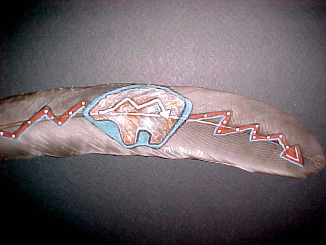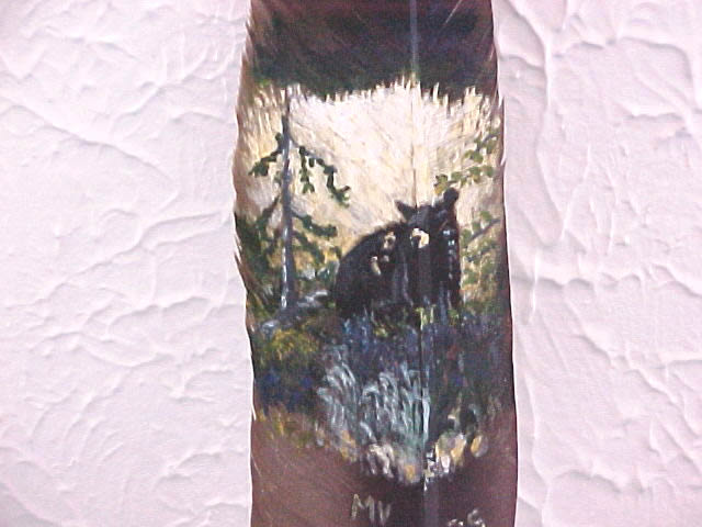Bears bs1b-5/02 Black bear on bear skull f102a-2/07Black bear on feather f79a – 9/03Spirit Bear abstract painted on feather f74a-8/03Black bear painted on feather f35a-8/02Bear in Meadow painted on feather f34a-8/02Black bear on feather f145a-6/11Oneida Turtle Clan on feathers Share this: Click to share on X (Opens in new window) X Click to share on Facebook (Opens in new window) Facebook Click to share on Pinterest (Opens in new window) Pinterest Like Loading... Related