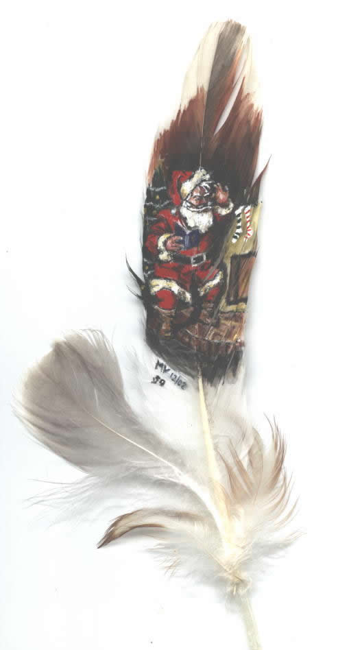 Misc Pieces An old chair gets new life – 7/17 f112a – 10/07Angel on feather f113a-10/07Father Christmas with animals on feather f110a-9/07Father Christmas with wreath on feather f98a-8/05Walleye fish on feather f60a-12/02Father Christmas 2 on feather f58a-12/02Santa w/Buffalo Sleigh on feather f59a-12/02Santa 2 on feather f53a-12/02Father Christmas on feather f52a-12/02Santa on feather f37a-8/02Lighthouse on feather f25a-7/02Racoon on feather f119a-8/08Portrait of commissioner’s grandfather on multiple feathers, with photo f127a-4/09Raccoon baby f134a-10/10Trilliums on feather f135a-10/10Pink Lady Slippers on feather f136a-12/10Mordecai, Chinese Water Dragon on feather f143a-4/11Rain Garden River Birch on feather f145a-6/11Oneida Turtle Clan on feathers f153a-11/12Red-eyed tree frog on feather Share this: Click to share on X (Opens in new window) X Click to share on Facebook (Opens in new window) Facebook Click to share on Pinterest (Opens in new window) Pinterest Like Loading... Related